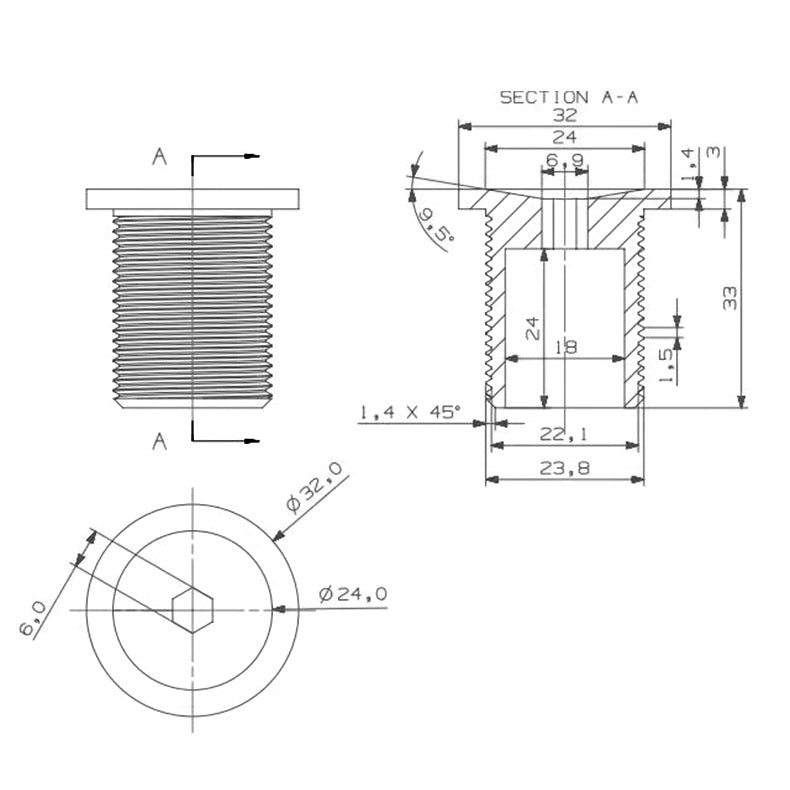 Easy 6mm Allen Installation: Features a reliable 6mm Allen key drive for a secure grip and easy adjustment, preventing tool slip and stripping.