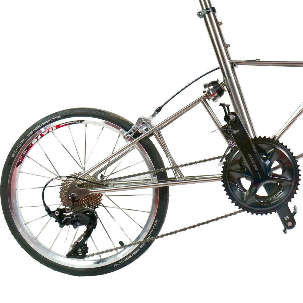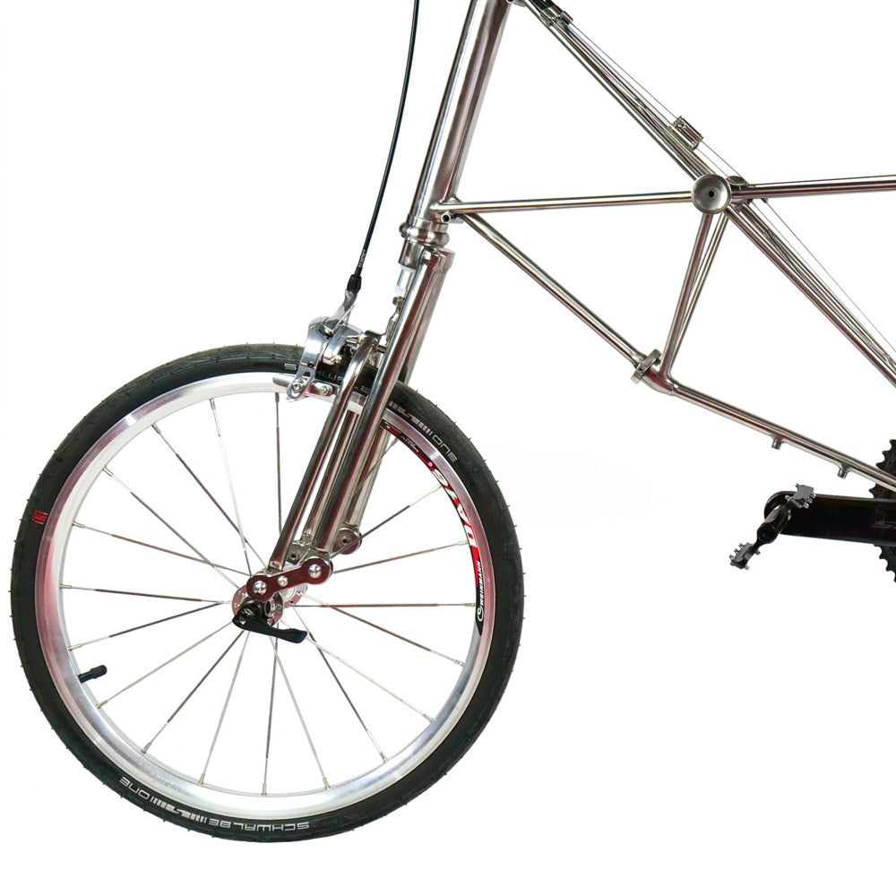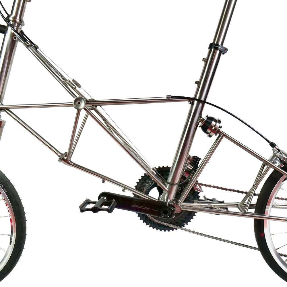 Combines Moulton’s renowned suspension with titanium’s natural dampening and durability for a ride that’s smooth, swift, and resilient.